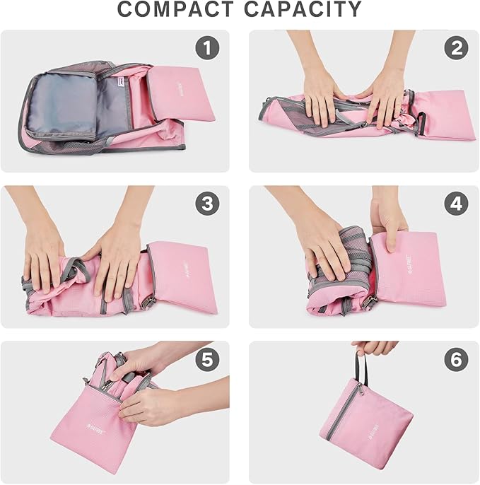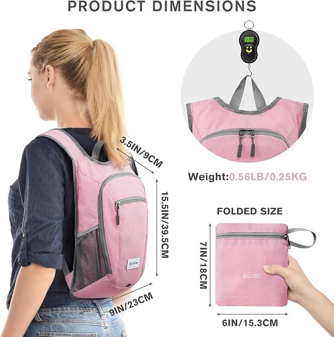 G4Free 10L/15L Hiking Backpack Lightweight Packable Hiking Daypack Small Travel Outdoor Foldable Shoulder Bag(Pink)