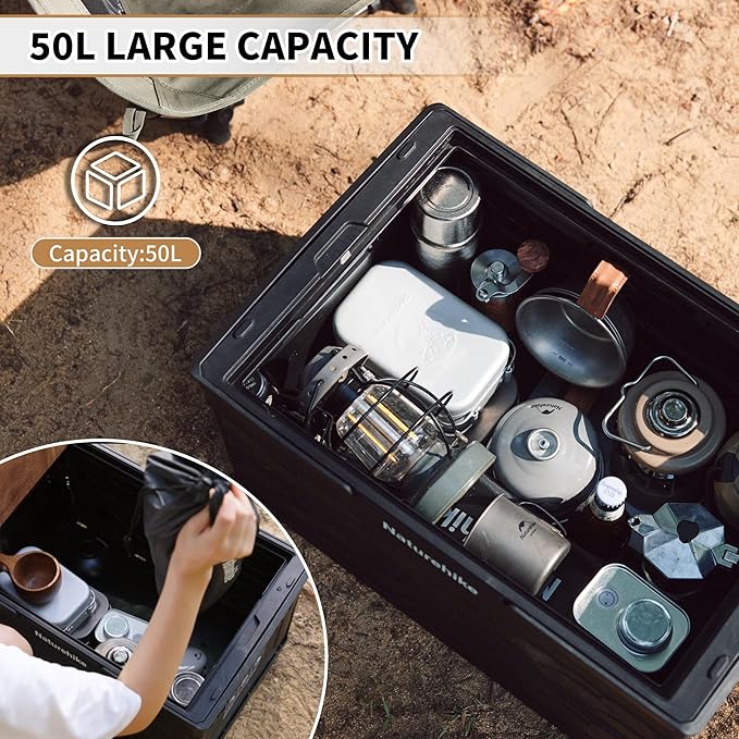 Naturehike Lispace Camping Table with Storage Box, 50L Collapsible Trunk Organizer with Lid, Folding Storage Bin for Camping Picnic Home
