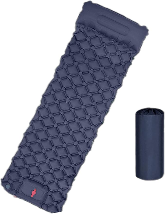 Sleeping Pad for Camping- Ultralight Inflatable Sleeping Mat with Built-in Foot Pump & Pillow, Upgraded Compact Camping Air Mattress for Camping, Backpacking, Hiking (Dark Blue)