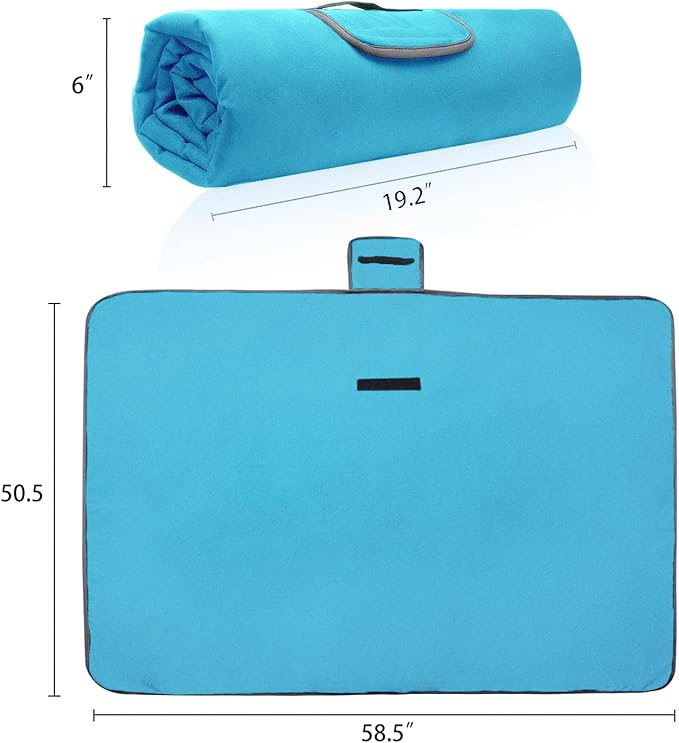 - PACKABLE & PORTABLE- It’s also easily foldable and packable, this compact waterproof throw blanket can be simply rolled up into a handled roll secured by a heavy-duty fastener, which is super easy to store.