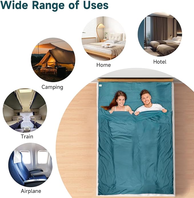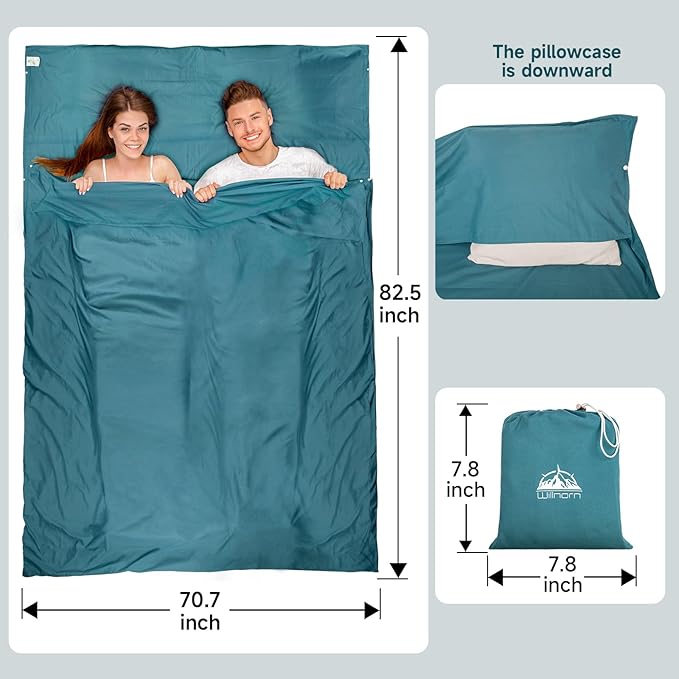 - Perfect Size and Comfort: The double travel sheets measure 83 x 71 in,it provides ample space for 2 tall people. Perfect stitching and soft materials immerse you in comfort. In addition, we have designed a pillow pocket for added convenience. When traveling, you can rest on your own pillow for a healthier and more comfortable sleep.