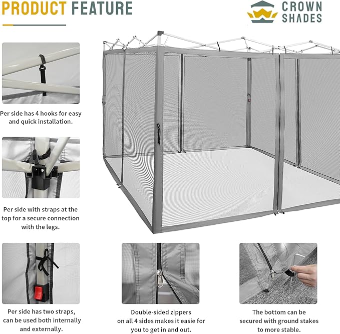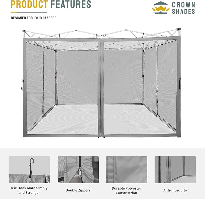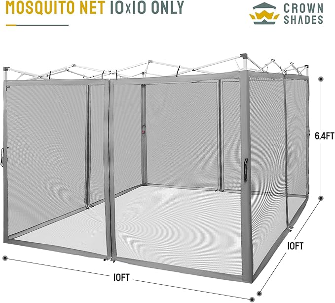 CROWN SHADES Gazebo Mosquito Net for 10 x 10 Pop Up Canopy - Patio Gazebo Mesh Sidewall with Zipper for Outdoor Tent, Garden and Backyard (4 Packs, Grey)
