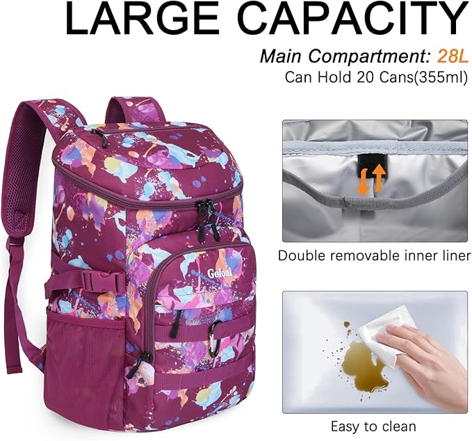 - 18-Hour Ice Retention Guarantee – High-density insulation and leak-proof lining keep food/drinks colder 50% longer than standard cooler backpacks—ideal for all-day adventures