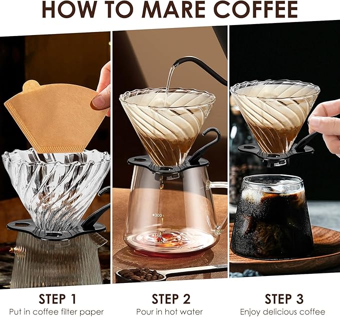 - Crafted with a heat-resistant glass coffee cone body and a polypropylene holder for durability.