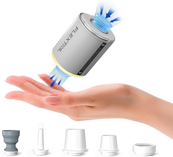 FLEXTAILGEAR Portable Air Pump with Camping Lantern Tiny Pump 2 / 2X 4kPa Air Pump for Inflatables Rechargeable Air Mattress Pump with Magnetic Design for Sleeping Pads, Pool Floats, Swimming Rings