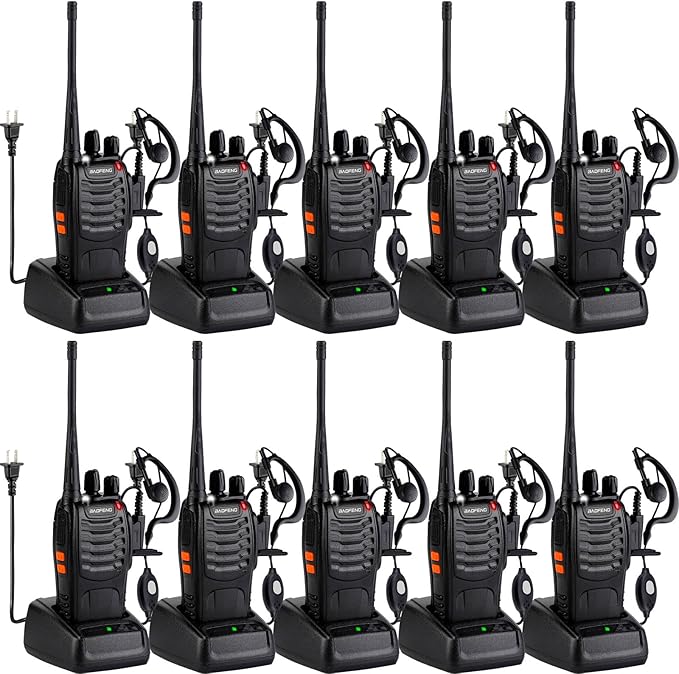 Baofeng Walkie Talkies 888S Rechargeable Long Range with Earpieces for Adults, 16 Channel Professional Radio Handheld Two Way Radios Li-ion Battery and Charger Included (10pack with 10earpiece)