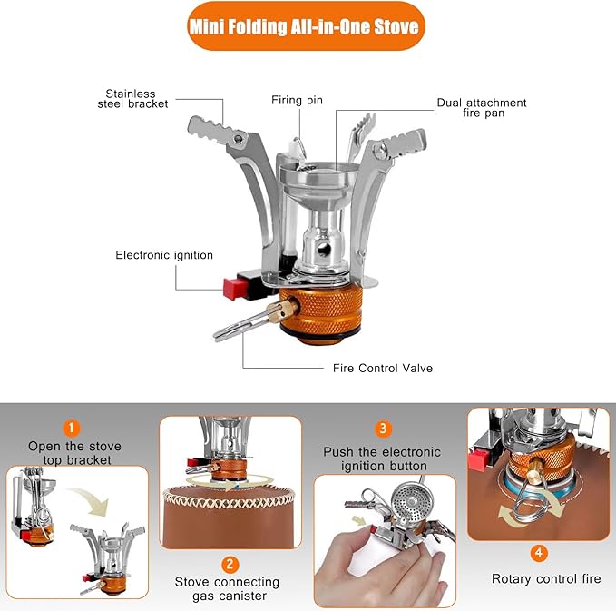- 【HUMANIZED DESIGN】 Scale measurement design on the camping pot could save your time greatly. The handle can be folded, super easy for storage. Included Mesh Bag,all the stuffs can be packed together, so as your gas tank. This set is special designed for daily backing, small size and enough space for your gas tank.