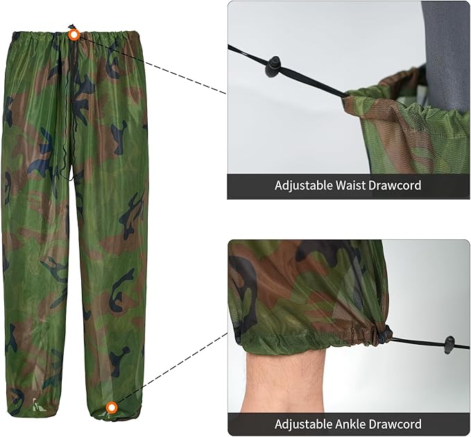 • Made of lightweight polyester fabric, the outside can be clearly seen through the mesh. This is a camouflage mosquito suit with high visibility, good breathability and ultra-fine mesh very suitable for outdoor Fishing, Camping, Hiking, Bee keeping, Climping and Gardening.