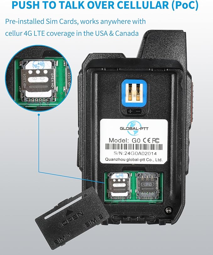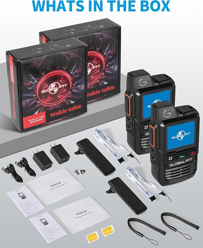 2-Pack Global Walkie Talkies with Sim Cards - Handheld PoC Two Way Radios Unlimited Range - Rechargeable PTT Push to Talk Over Cellular Radio Long Range (G0)