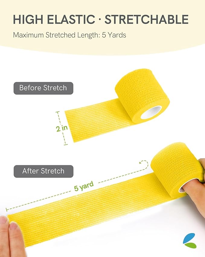 - Highly Elastic and Comfortable: Designed for flexibility, our bandages stretch up to 1.5 times their original length, providing a snug, secure fit. This elasticity allows for versatile application on different body parts, ensuring comfort and effective support.
