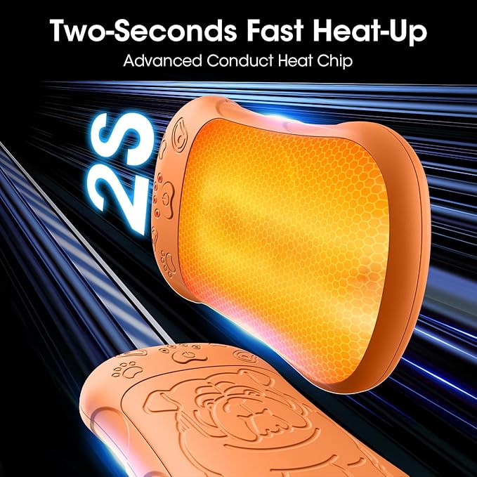 - 【2-IN-1 Magnetic Hand Warmers】This rechargeable hand warmers equipped with a strong magnetic feature that allows you combine them together like palm-sized hand warmer/separate effortlessly.Ergonomic comfort,easy grip,adorable bulldog pattern.Safety certified temperature control chip,thousands of polished exterior material smooth and warm,one button for all operations.Pocket and compact designed incredibly convenient for carrying or storage.Emanating constant heat while keeping the blood flowing.