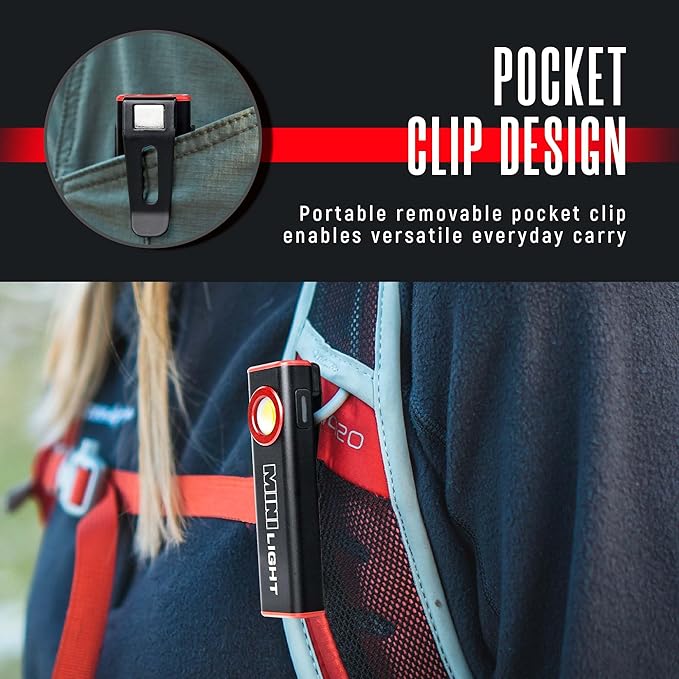 - 【Clip and Magnet Design】Our EDC Flashlight features an excellent multifunctional design. The clip of our work light allows you to securely attach it to belts, tool bags, or tent tops, releasind your hands. Additionally, our work light is equipped with 2 powerful magnets, which can firmly attach to various metal surfaces. You can easily attach the light to your car hood or steel shelf while repairing.