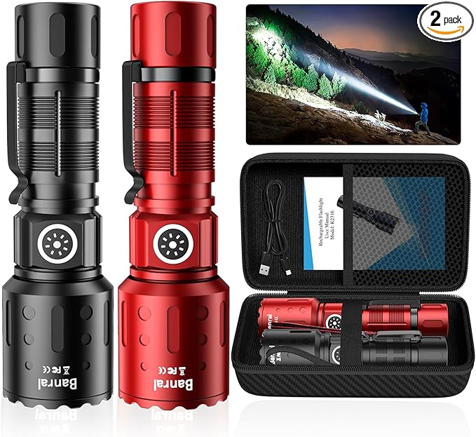 - 【SUPER BRIGHT FLASHLIGHTS】Banral tactical flashlights high lumens is equipped with Upgraded Long Beam LED Chip, which produces a powerful and focused beam, brighter than car headlights. LED high-powered flashlight provides a max output of 20,000 lumens, the ultra-strong beam can easily focus on objects up to 1500 meters away or illuminate the whole room and backyard.