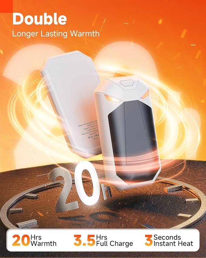- 【2-in-1 Rechargeable Hand Warmers】- Powerful 8000mAh hand warmers with 2-in-1 design, allowing you to split them into two separate hand warmers, or combine them into one for easy storage. Sharing with loved ones is more convenient than ever.
