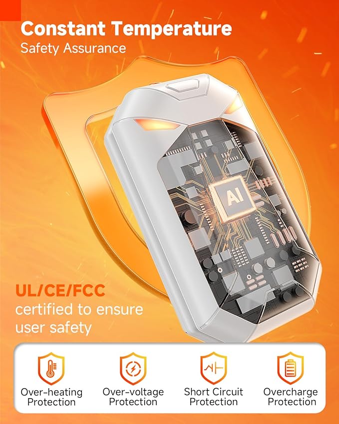 - 【Safety Guarantee】- The rechargeable hand warmer is made of high lithium battery, aluminum and flame-retardant ABS, and is UL, CE, FCC certified. Built-in intelligent protection system, with protection functions such as power-on, short circuit, overload, etc., shockproof, anti-scalding, explosion-proof, and no radiation.
