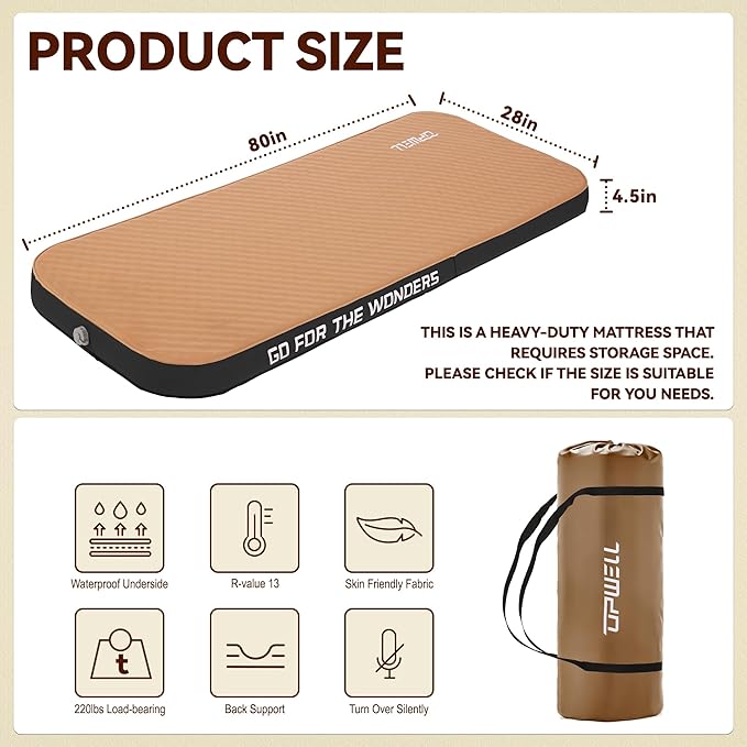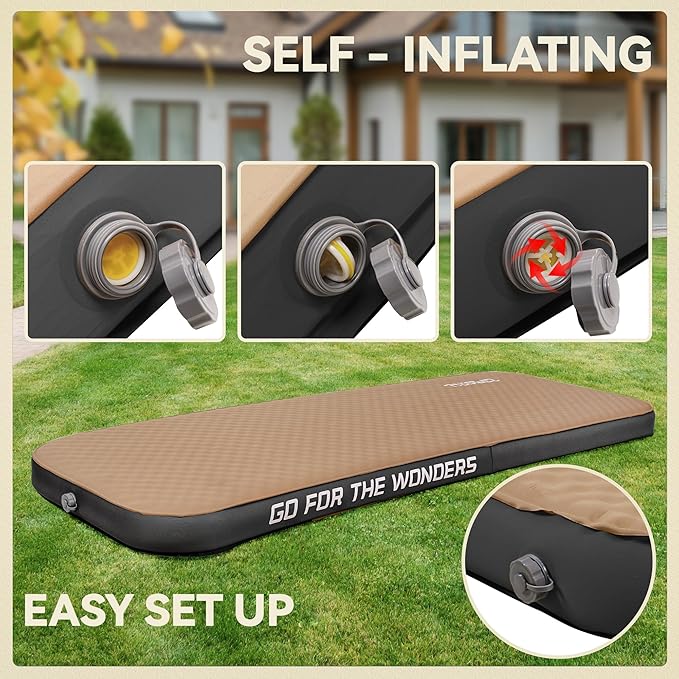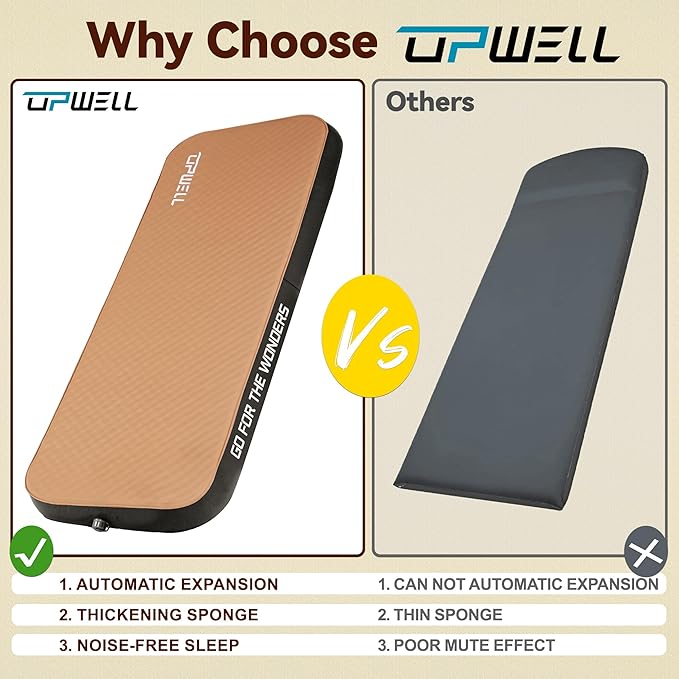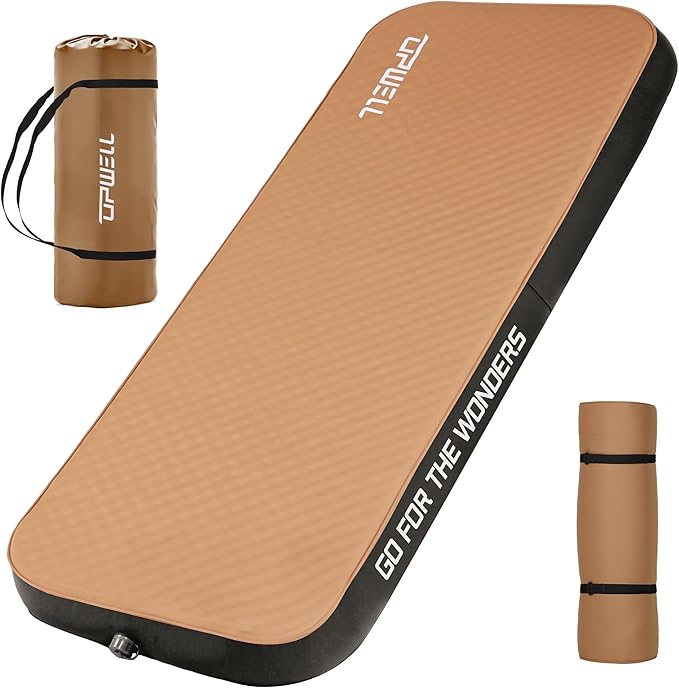 UPWELL Self Inflating Sleeping Pad 4.5" Thickness Camping Mattress with Solid Foam Portable Fast Inflation for Outdoor Single Sleeping Mat Portable Roll Up Bed Brown&Black