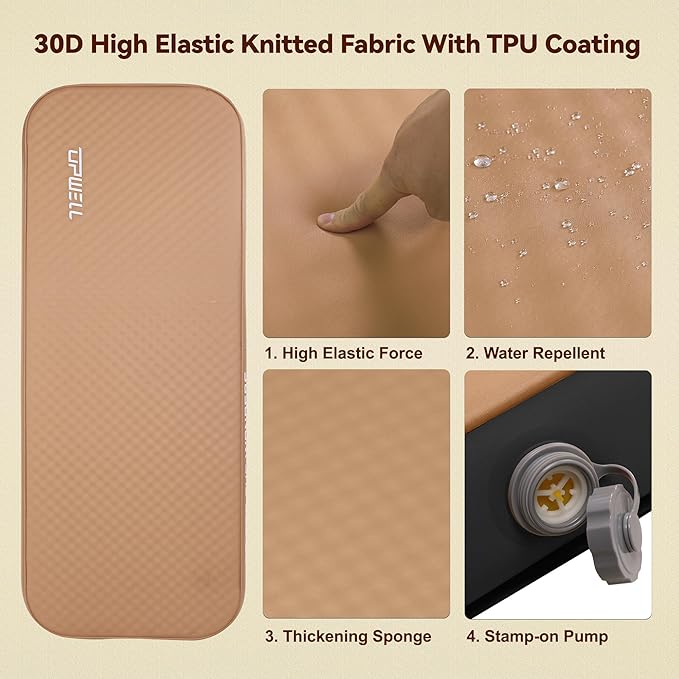 - High Quality Thick Sleeping Pad - 30D knitted fabric covered with TPU, breathable, sweat absorption, heat insulation and tear resistance, more wear-resistant than the nylon fabric on the market, Its unique internal structure ensures even distribution of air and foam throughout the pad, effectively reducing pressure points , this sleeping pad accommodates a variety of body types.