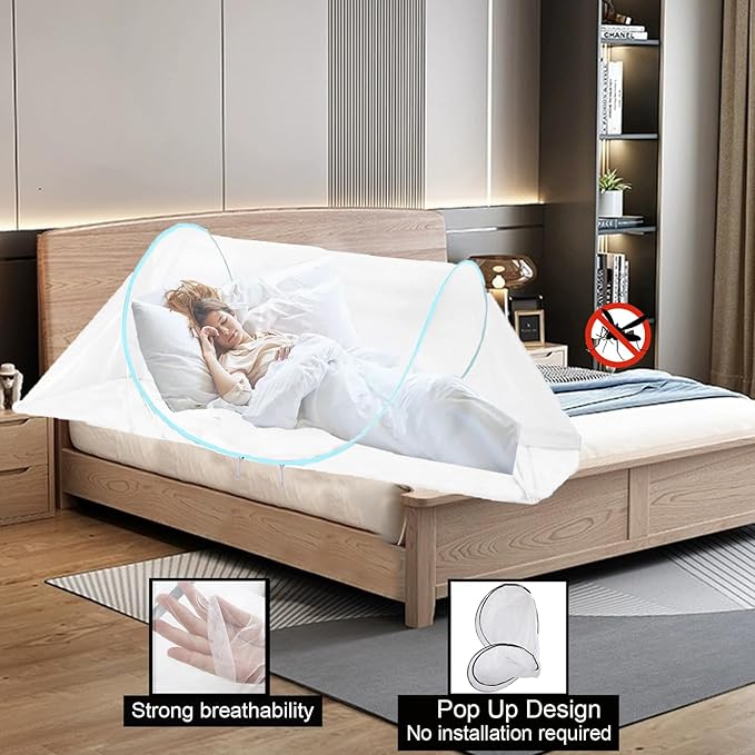 - Foldable and Portable: Package size: 13.38 X 13.38 inches(34 X 34 cm), weight: 11 OZ(310 g).Easy to fold and take anywhere, you can carry a mosquito heat net through a backpack or bag( over 13.38 inches ) directly. Ideal for home living, camping, travel and nap. The mosquito net can be hand washed in water and air dried easily