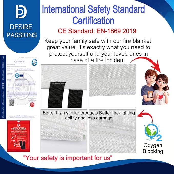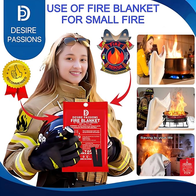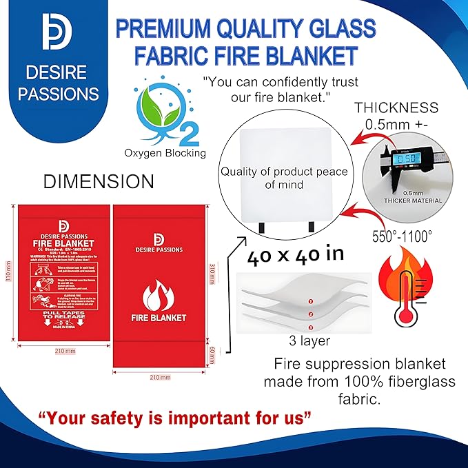 - 🔥 Kitchen Survival: Desire Passions Fire blanket emergency pack for home fire suppression when you need it. Sized at 40x40 inches, flame retardant fabric to protect loved ones and fire proof blankets stop fires in their tracks.