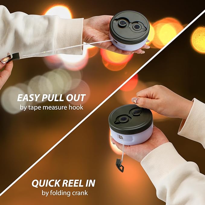 - Easy to Use and Portable: Compact at just 3.60 × 1.91 inches, these lights are easy to carry and set up. Simply pull out the string lights to use, and retract them by twisting the handle when you’re done. The five lighting modes—steady string light, breathing mode, flashing mode, main light on, and all lights on—offer versatile lighting options for any occasion.