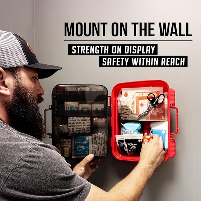 - ✅Organized, Easy-Access Compartments with Mountable Case: Features an intuitive, multi-compartment interior for quick access during emergencies. The durable hard case is mountable for easy placement in office, workstation, school classroom, restaurant kitchen, and botiquin primeros auxilios para trabajo. Case dimensions: 13" x 11.5" x 3.5", weighing 4.25 lbs.