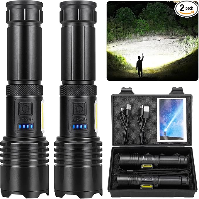 Rechargeable LED Flashlights High Lumens, 900,000 Lumens Super Bright Flashlight with 7 Modes & Waterproof, Handheld Powerful Flashlights for Camping, Emergencies, Home (2 Pack)