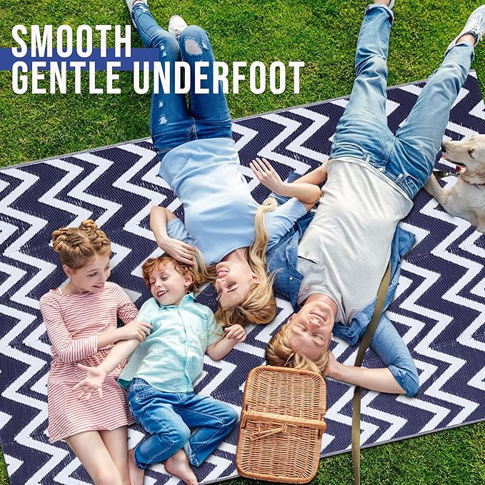 - Stain-resistant & Easy-care: Crafted from recycled plastic straws, our camping rugs are waterproof, fast-drying, and built to handle anything. They're also a sustainable choice for your outdoor adventures, made from repurposed materials! Say goodbye to stains! Mud, grass, and spills simply rinse away with water, leaving your rug looking fresh and new.