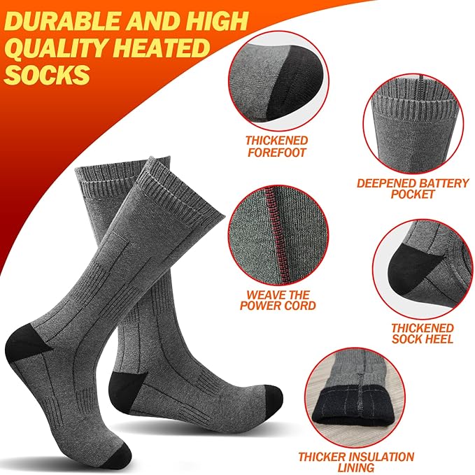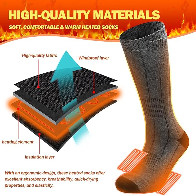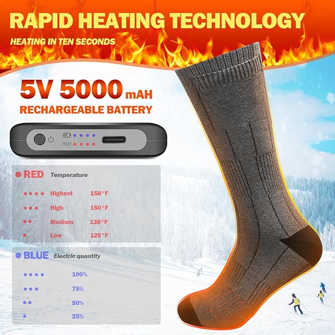 Heated Socks for Men/Women - 5V 5000mAh Battery Powered, Perfect for Outdoor Riding, Camping, Hiking, Motorcycling, and Skiing