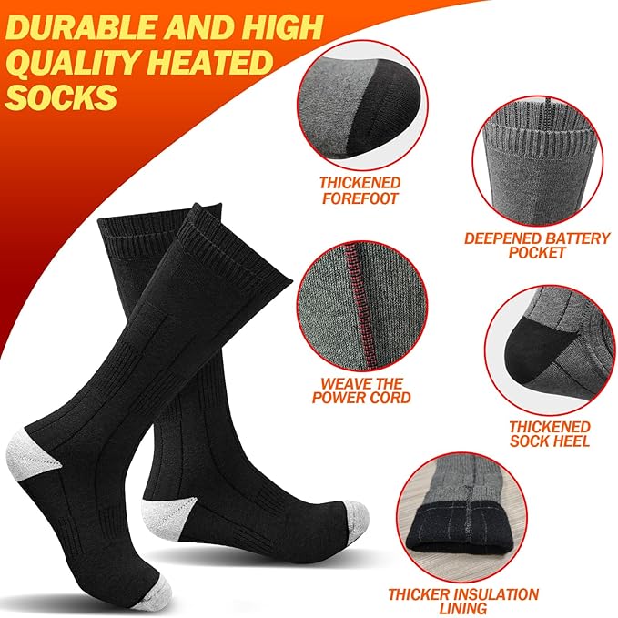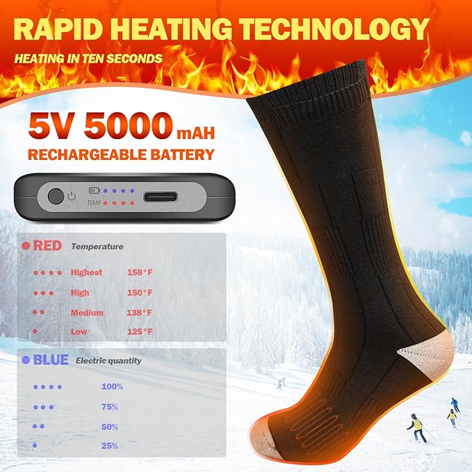 Heated Socks for Men/Women - 5V 5000mAh Battery Powered, Perfect for Outdoor Riding, Camping, Hiking, Motorcycling, and Skiing
