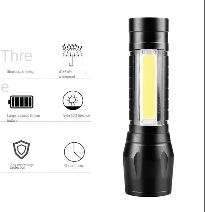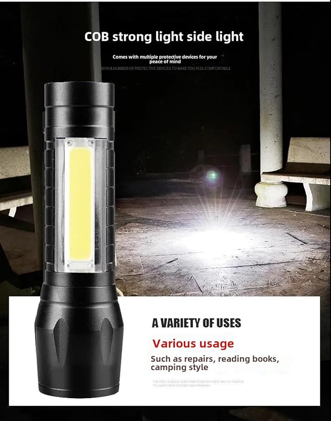 - EMERGENCY FLASHLIGHT -- This rechargeable flashlight can be used as an emergency energy source to charge some common USB devices, such as cell phones, headphones and so on. It is not only suitable for daily use such as camping, night dog walking, night running, night fishing, night riding, hiking, etc., but also for police night patrol, car maintenance and other workplaces such as gas stations, charging stations, chemical labs, airports, warehouses and so on.