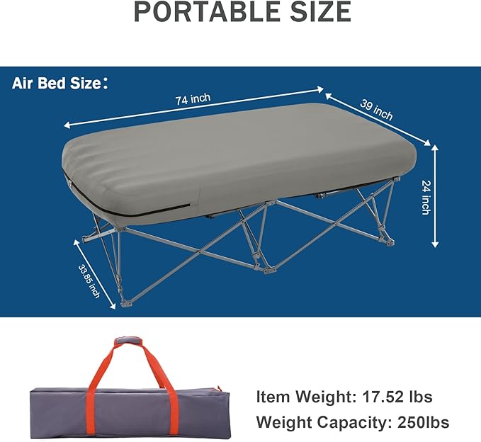 - Quick Setup: Easy to inflate and deflate,this twin size cot comes with a carrying bag for convenient storage and transport. Note: Air pump not included
