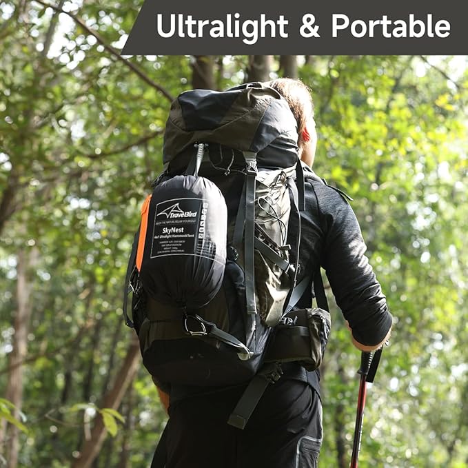 - 【Ground Mode】No trees? No problem! Create a self-sustaining shelter with trekking poles or sticks. Combine with two straps and tent stakes for a sturdy ground tent setup. Whatever the wilderness, SkyNest hammock tent is a must-have camping kit for adventurers.