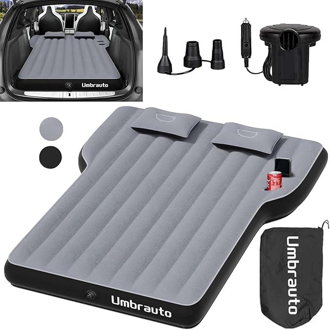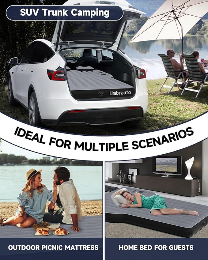 Umbrauto Air Mattress for Tesla Model Y, Custom Inflatable Camping Bed for Back Trunk, Upgraded Sleeping Pad w/Soft Flocking Surface, Durable 210T Fabric Bottom, Portable Pump for SUV Outdoor Travel