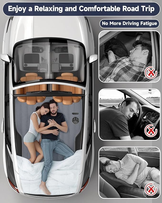 - Easy Inflation/Deflation: Our electric car pump connects effortlessly to the 12V cigarette lighter, inflating and deflating the mattress quickly, ready within minutes. This versatile mattress isn't confined to the Tesla Model Y trunk alone; it's also perfect for diverse uses like outdoor camping, accommodating guests at home, or serving as a tent mattress.