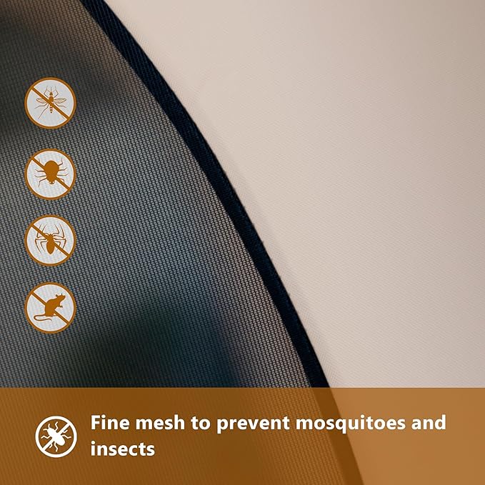 - User-friendly design: This canopy with mosquito net is crafted with a 6-sided fine mesh, it ensures 360° ventilation, shielding you from pesky bugs and offers all-day sun protection. With 2 side mesh can be opened, making it convenient to enter or exit.