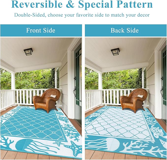 - Fully Reversible Rugs: The outdoor rug for patio is fully reversible, which is more practical than other ordinary rugs. And the outdoor carpet adopts trendy, cute and geometric patterns, which will help you add chic and comfort to your home, patio or RV