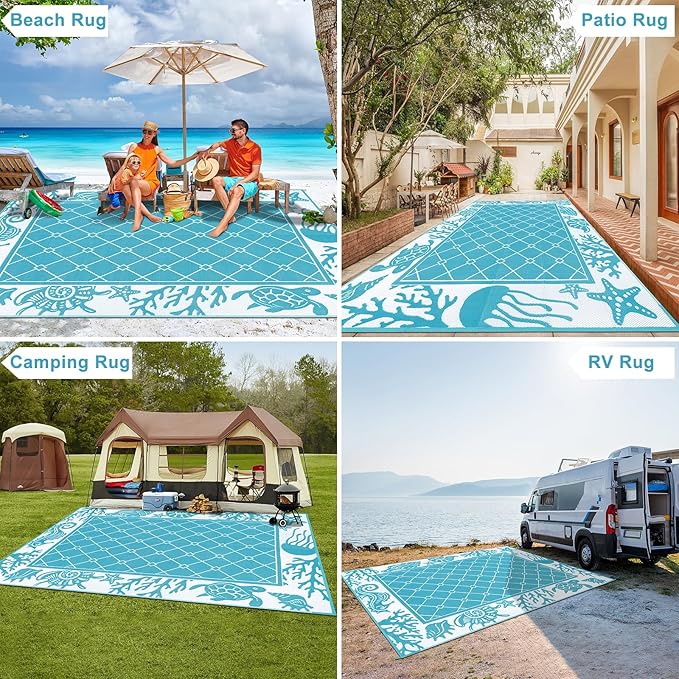 - Multiple Uses: The deck rug is lightweight, delicate, and easy to carry. Perfect for various occasions such as RV, patio, backyard, deck, picnic, beach, camping and so on. It is also ideal as a gift for your wife, friends, parents, kids and family