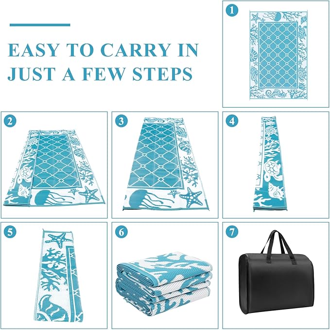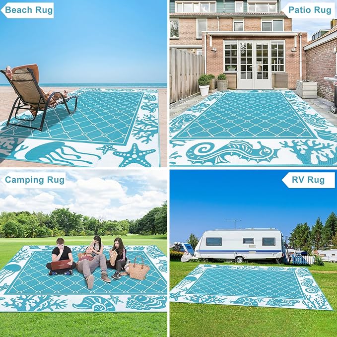 - Multiple Uses: The deck rug is lightweight, delicate, and easy to carry. Perfect for various occasions such as RV, patio, backyard, deck, picnic, beach, camping and so on. It is also ideal as a gift for your wife, friends, parents, kids and family