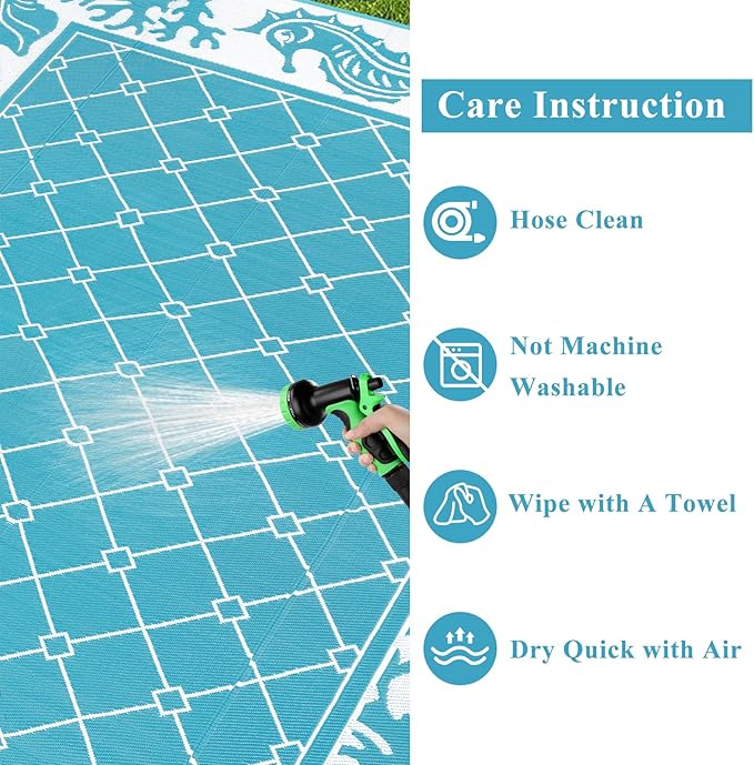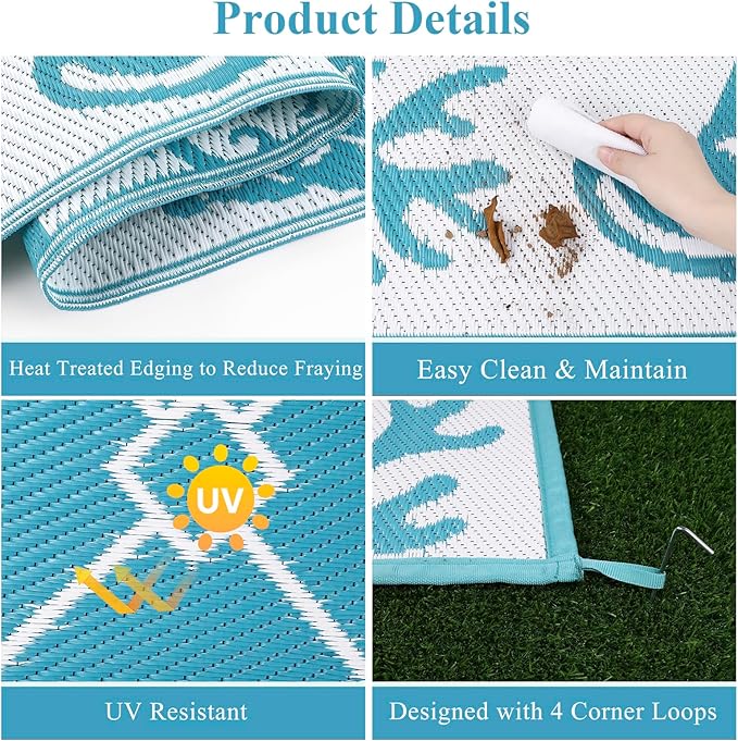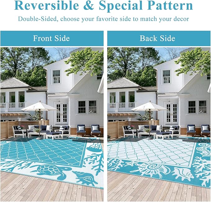- Fully Reversible Rugs: The outdoor rug for patio is fully reversible, which is more practical than other ordinary rugs. And the outdoor carpet adopts trendy, cute and geometric patterns, which will help you add chic and comfort to your home, patio or RV