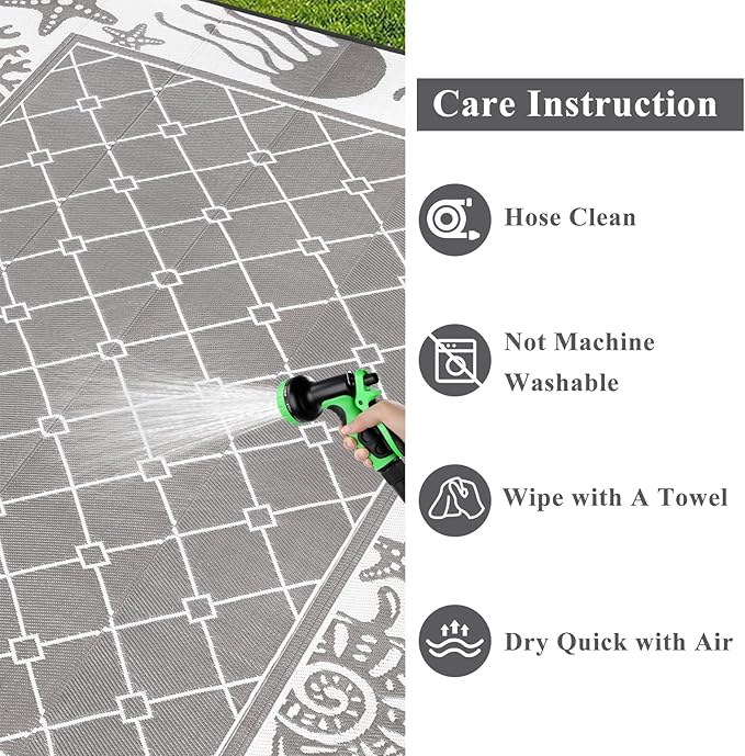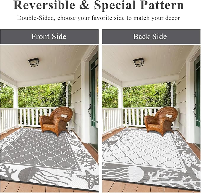 - Fully Reversible Rugs: The outdoor rug for patio is fully reversible, which is more practical than other ordinary rugs. And the outdoor carpet adopts trendy, cute and geometric patterns, which will help you add chic and comfort to your home, patio or RV