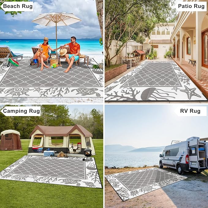 - Multiple Uses: The deck rug is lightweight, delicate, and easy to carry. Perfect for various occasions such as RV, patio, backyard, deck, picnic, beach, camping and so on. It is also ideal as a gift for your wife, friends, parents, kids and family