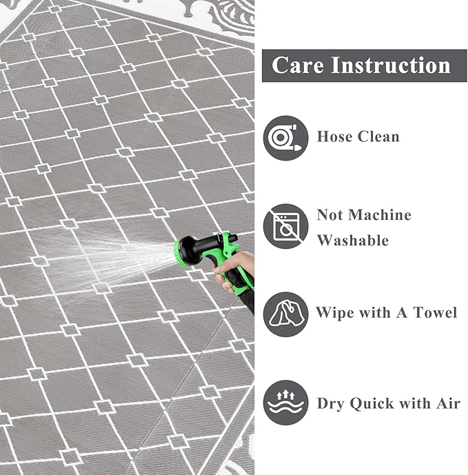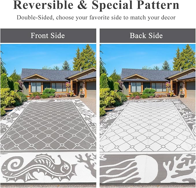 - Fully Reversible Rugs: The outdoor rug for patio is fully reversible, which is more practical than other ordinary rugs. And the outdoor carpet adopts trendy, cute and geometric patterns, which will help you add chic and comfort to your home, patio or RV