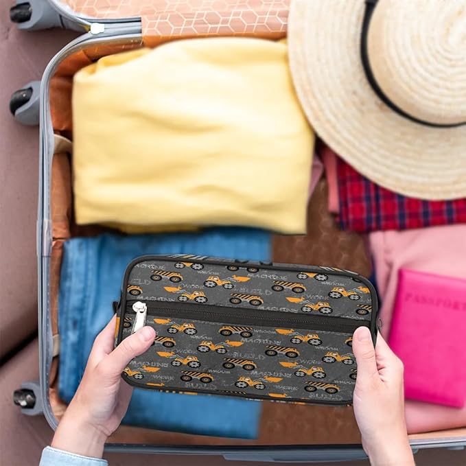 - 【Large Capacity Hanging Toiletry Bag】The truck tractor cars makeup bag for boys mens has a large main zipper compartment for storing all other small items needed,such as cosmetics,razors,travel toiletries,etc;The outer layer has a zippered small pocket suitable for storing cash,cards,passports,phones,snacks,and other small items that can be conveniently carried around.
