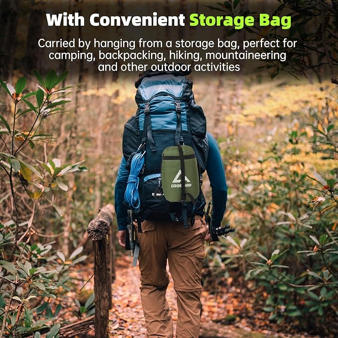 - [Premium Materials] The hammock underquilt is made of 20D ripstop nylon shell with a DWR coating. Soft 300T polyester pongee lining, enough 700g polyester filling. The CROSSHIP underquilt for camping is suitable for 41°F - 68°F temperatures to enjoy your outdoor activities in 4 seasons