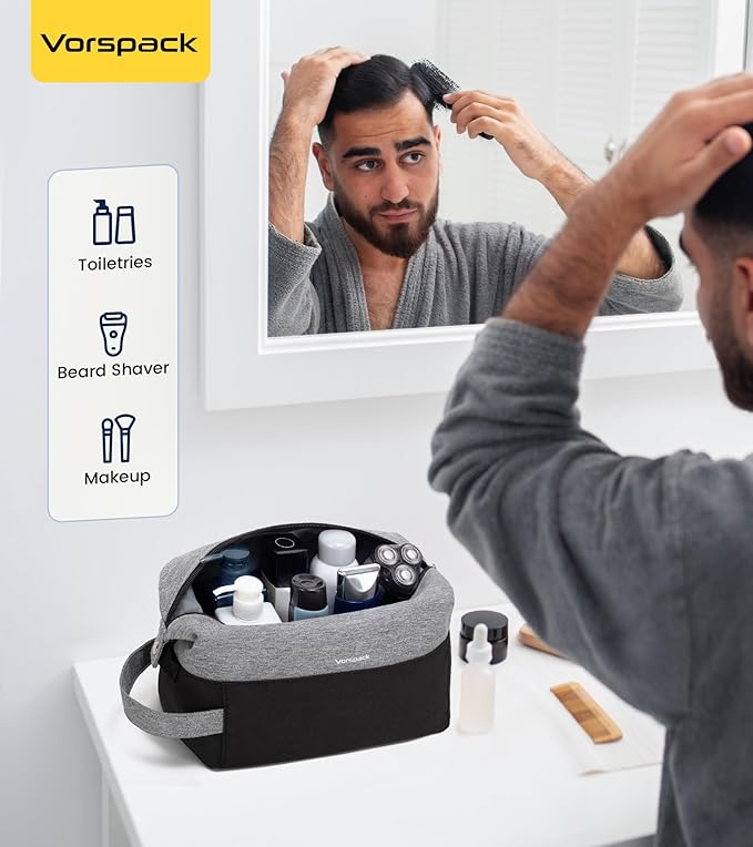 Vorspack Travel Toiletry Bag for Men - Lightweight Mens Toiletry Travel Bag Water Resistant Dopp Kit Shaving Bag for Skincare Toiletries Bathroom Gifts - Black