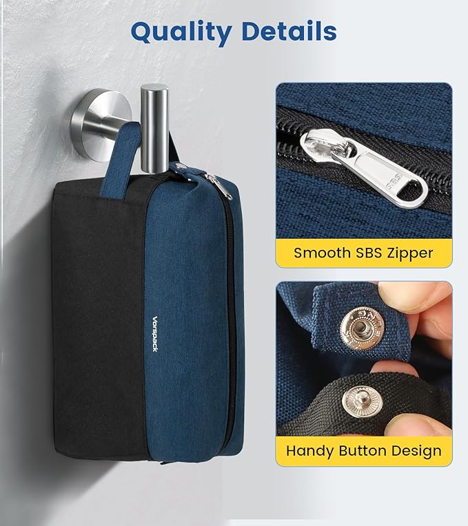 - Smooth SBS zipper & handy handle: This toiletries travel bag uses smooth SBS zippers for easy opening and closing. The side handle of the travel kit for men makes it convenient to carry or hang anywhere