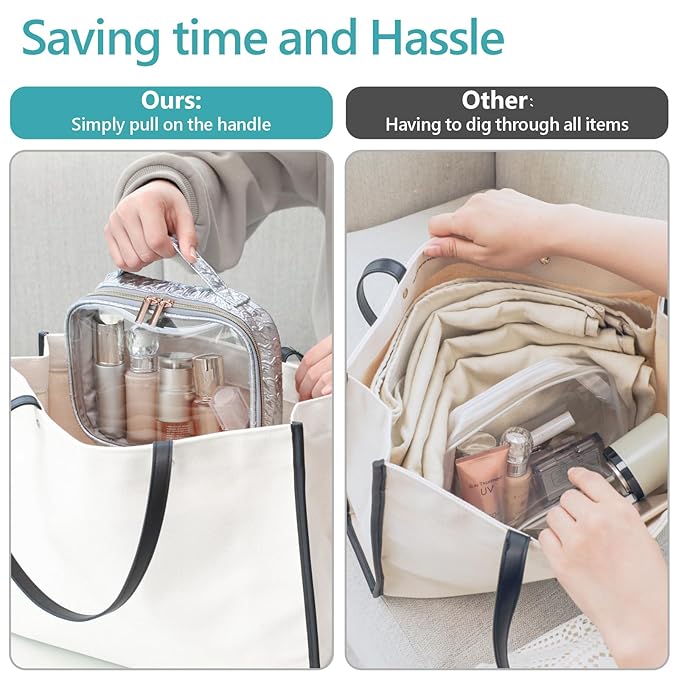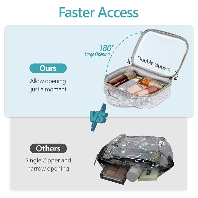 - TSA Approved: This medium size: 7.8 x 2.3 x 5.9 inch. Clear makeup bag follows the 3-1-1 Liquid Rule of airlines. When placing travel-sized containers that are 3.4 ounces or 100 milliliters in this quart-sized bag, you can quickly pass the airport security screening