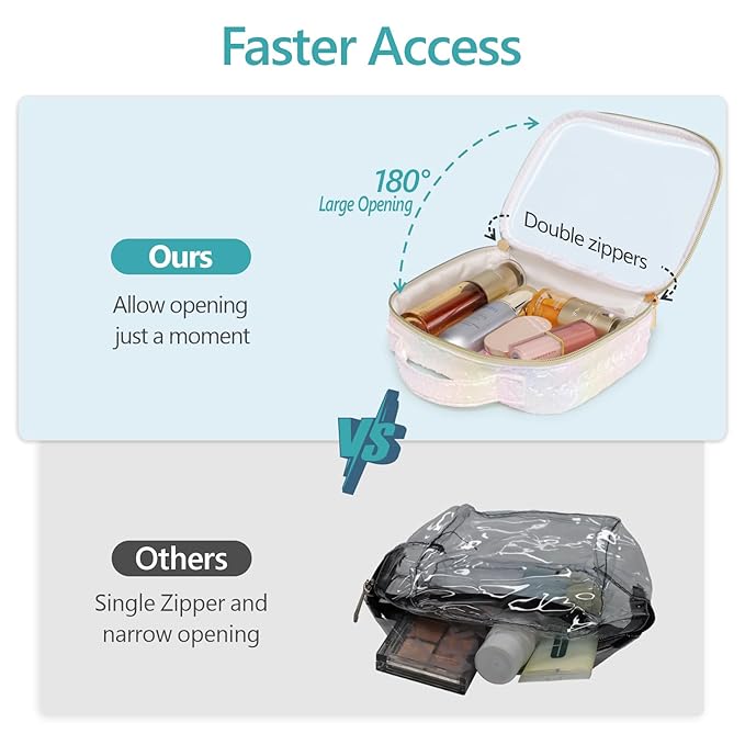 - TSA Approved: This medium size: 7.8 x 2.3 x 5.9 inch. Clear makeup bag follows the 3-1-1 Liquid Rule of airlines. When placing travel-sized containers that are 3.4 ounces or 100 milliliters in this quart-sized bag, you can quickly pass the airport security screening