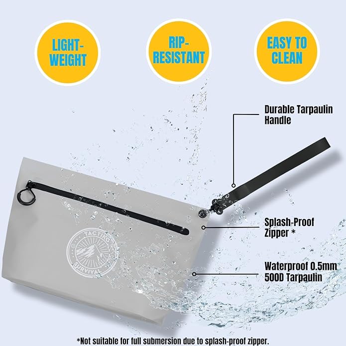 • Rugged Protection for Any Adventure: Made from 500D PVC tarpaulin with welded seams, this zippered pouch protects your essentials from splashes, sand, dust, mud, and light rain. Ideal for camping, hiking, beach trips, cruises, and travel, it keeps gear secure in unpredictable conditions.
