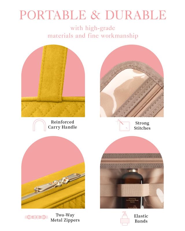 HOTOR Travel Toiletry Bag w/Hanging Hook - Spacious Toiletry Bag Essentials for Women & Men, Makeup Bag/Big Comparment, Waterproof for Travel Accessories, Medium, Yellow